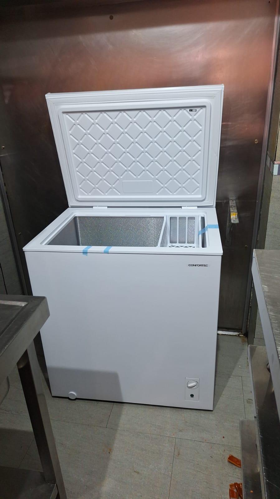 Contamos con: 2 TV con YouTube, 2 baños, frigoríficos, congeladores, 2 microondas, cafetera, 2 aires acondicionados, mesas y sillas